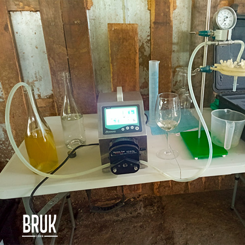 Bruk trabaja con fruta de huerto propio y productores locales, priorizando manejos que reduzcan pérdidas y mantengan la calidad. Se utilizan insumos eficientes y procesos limpios, evitando intervenciones que alteren el perfil natural de la sidra.